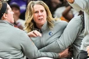 明尼苏达山猫主教练里夫因半决赛G3对判罚不满,随后激烈追逐与辱骂裁判,被驱逐后未能及时离场。而在离场时又对球迷发表了不当言论,在赛后新闻发布会上同样有不合时宜的言论,她因此还被追加G4禁赛。