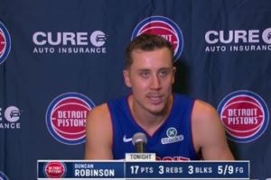 体育资讯10月25日讯 NBA常规赛,活塞115-111险胜火箭。赛后,活塞球员邓肯-罗宾逊接受了采访。
