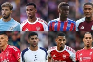 候选人有:鲁本-迪亚斯(曼城)、加布里埃尔(阿森纳)、格伊(水晶宫)、孔萨(维拉)、米伦科维奇(诺丁汉森林)、罗梅罗(热刺)、萨利巴(阿森纳)、范迪克(利物浦)