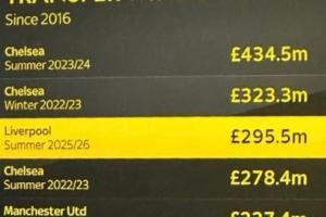 3️⃣ 利物浦 25/26夏 £295.5m
