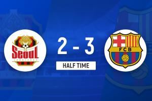 上半场比赛结束,巴塞罗那3-2首尔FC。